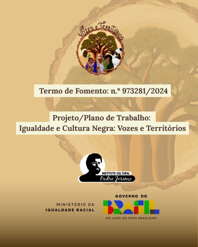 A ação faz parte do Projeto: Igualdade e Cultura Negra: Vozes e Territórios – Termo de Fomento 973281/2024 celebrado entre o Instituto Cultural Padre Josimo e o Ministério da Igualdade Racial – Governo do Brasil.