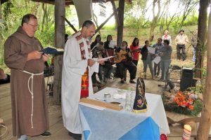 As atividades iniciaram pela manhã, com acolhida dos participantes e celebração da Missa ao ar livre, onde a natureza abundante do entorno da gruta serviu de “igreja” para a partilha da Eucaristia, ministrada pelo padre Tarcísio Pontel e pelos freis Sérgio Görgen e Wilson Zanatta. Na sequência os presentes participaram de almoço comunitário, dividindo os alimentos uns com os outros. Na parte da tarde foi realizado ato cultural coletivo, com o protagonismo dos assentados que interpretaram canções, trovas e poemas. Ao final do dia todos se despediram em novo momento de espiritualidade, recebendo das mãos dos religiosos a benção da saúde.