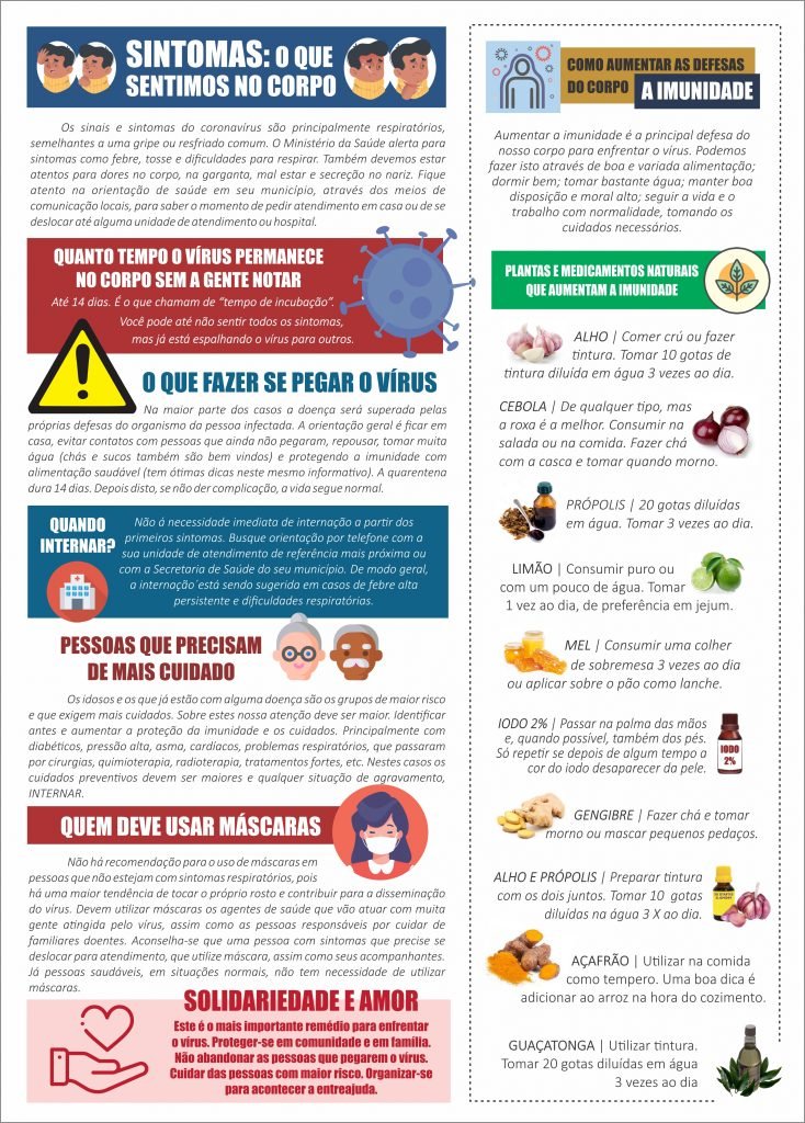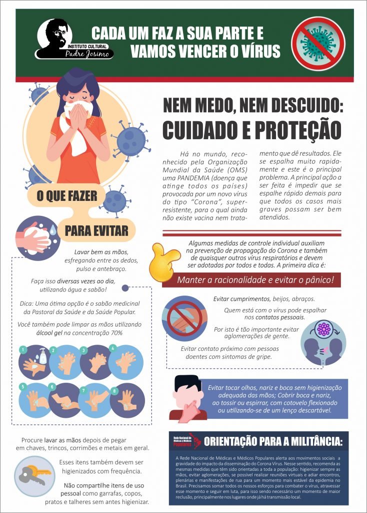 Confira o informativo do ICPJ lançado na segunda-feira (16/03) e atualizado na quarta-feira (18/03), trazendo informações sobre o Corona Vírus, prevenção, tratamento e posturas. Também há no material dicas de plantas medicinais e alimentos que podem ser utilizados para reforçar a resistência e imunidade do organismo.