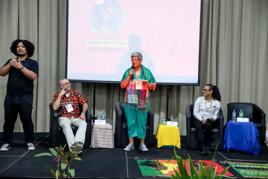 Mesa fez parte do seminário “Caminhos de Resistência: Mulheres Negras e Quilombolas – Vozes e Territórios” – Foto: Rafa Dotti