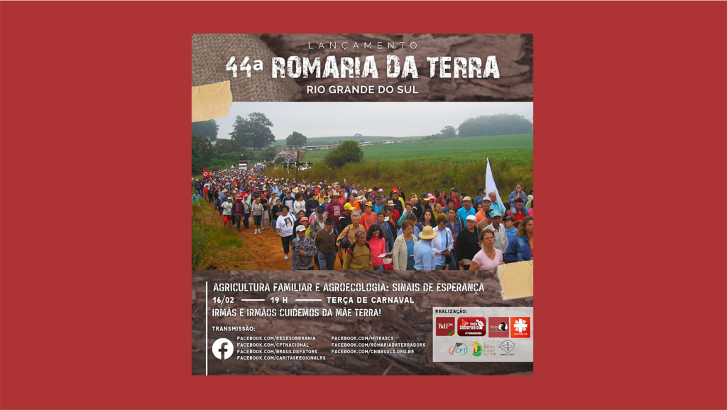 A live inicia às 19h, com uma programação especial de resgate histórico das romarias e lançamento da Romaria para 2022. O evento será transmitido pelas redes sociais da Rede Soberania, do Brasil de Fato RS, da Comissão Pastoral da Terra, da Cáritas, da CNBB Sul 3, da Diocese de Santa Cruz do Sul e da Romaria da Terra do RS.