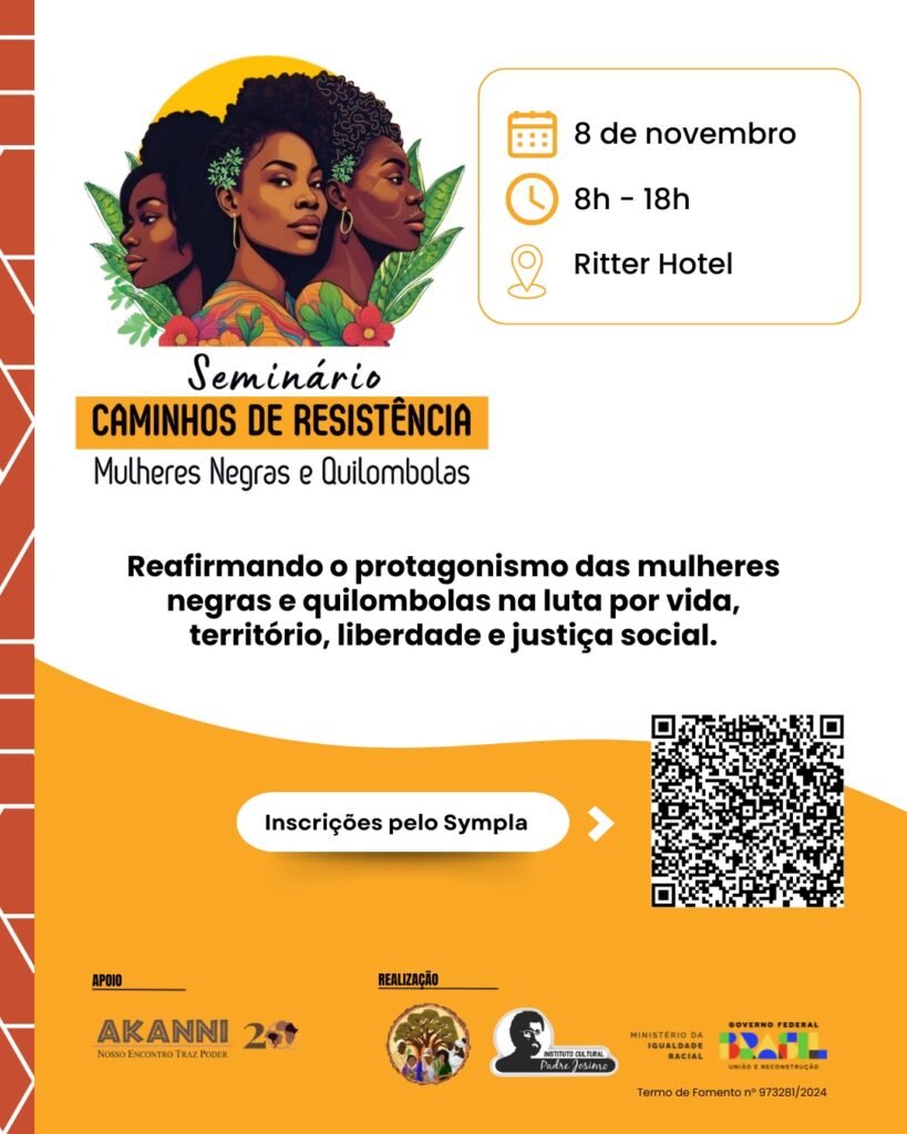 O evento reúne autoridades, lideranças negras, quilombolas, de terreiros, das periferias, além de representantes de organizações e grupos sociais para debater o protagonismo da mulher negra na conjuntura atual e as estratégias de defesa dos direitos dos territórios. A iniciativa é organizada pelo Instituto Cultural Padre Josimo (ICPJ), através do Termo de Fomento nº 973281 do Ministério da Igualdade Racial, a partir de emenda da então deputada federal Reginete Bispo (PT-RS).
