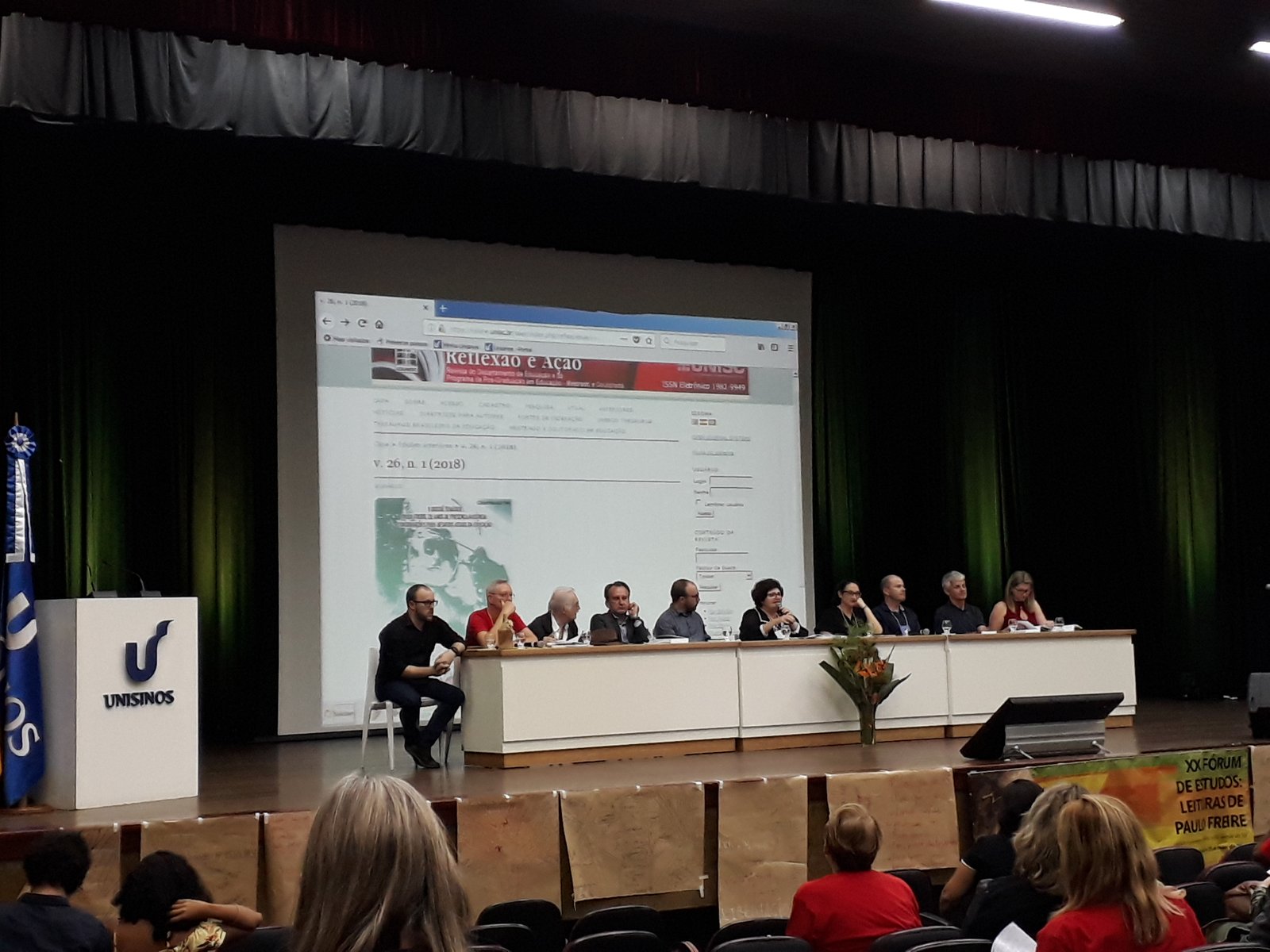 A educação popular tem se feito e realizado nos passos da caminhada de tantas e tantos educadores freirianos pelo Brasil e mundo a fora. Assim, alguns destes educadores, vindos de vários Estados brasileiros estiveram reunidos durante os dias 03,04 e 05 de maio, no Campus da Universidade do Vale dos Sinos, Unisinos São Leopoldo, onde aconteceu o XX Fórum de Estudos: Leituras de Paulo Freire, o fórum teve por tema “Legado e presença de Paulo Freire no Rio Grande do Sul”.