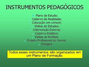 1) – Em uma Escola de Família Agrícola, os instrumentos pedagógicos são as ferramentas e estratégias utilizadas para facilitar o processo de ensino-aprendizagem e promover a formação integral dos jovens, conectando teoria e prática e considerando o contexto rural e familiar. Eles são essenciais para organizar o tempo entre escola e comunidade, e para que os jovens interajam com diferentes conhecimentos e experiências. O professor Robison Lucas do Nascimento que é monitor da Escola Família Agrícola Terra Nova,  do município de Terra Nova do Norte – MT, nos traz o que são os instrumentos pedagógicos.