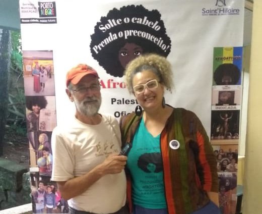 2- Entrevista: Na entrevista de hoje vamos conversar com a professora Larisse Moraes que mora e trabalha no Bairro Lomba do Pinheiro em Porto Alegre e é professora das séries iniciais na Escola Municipal de Ensino Fundamental Saint Hilaire neste mesmo Bairro. Nos últimos anos a prof. Larisse dedica 10 das suas 40 horas/aula ao Projeto “Solte os cabelos e prenda o preconceito”, criado e coordenado por ela com a participação ativa dos alunos. Neste mês de novembro a Escola desenvolve um extenso programa em relação à Consciência Negra que envolve todas as turmas, num total de mais de 1200 alunos. Na entrevista ela nos fala sobre o início do Projeto, seu desenvolvimento e de sua projeção ao nível nacional e até internacional.