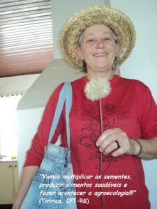 2- Testemunho:   Hoje vamos ouvir o testemunho de Oldi Helena Jantsch, mais conhecida por Tiririca, que atua nas Pastorais Sociais, no Movimento Ecológico e na defesa e coleta, reprodução e distribuição de Sementes Crioulas na Diocese de Santa Cruz do Sul. Ela nasceu em 1950 no município de Cruzeiro do Sul, onde mora e trabalha até os dias de hoje. É filha de pequenos agricultores e hoje ela é “Agricultora Ecológica”, produzindo alimentos sem o uso de venenos e outros produtos químicos que fazem mal à saúde humana e da natureza em geral. Oldi sempre participou da vida de sua Comunidade Eclesial local e ao nível da Diocese de Santa Cruz do Sul no Vale do Rio Pardo, RS. Atua ativamente na Comissão Pastoral da Terra – CPT, na Cáritas, na Escola de Jovens Rurais e na luta por resgatar, reproduzir e compartilhar Sementes Crioulas. Foi da Comissão Organizadora da 44ª Romaria da Terra, RS, que aconteceu recentemente. É um belo testemunho de alguém que doa a sua vida para que outras pessoas e, mesmo, a nossa Casa Comum a mãe terra tenha vida e a tenha em abundância.
