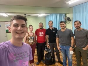 2- Testemunho/entrevista: Hoje vamos ouvir o testemunho de Luiz Arthur Dallabrida nascido em Três Passos, RS, tem 28 anos. Mora em Santa Maria, RS desde criança, acompanhando seus pais e participando da Comunidade Católica Romana da Catedral de Santa Maria. Participou de um grupo de jovens ligado à Pastoral da Juventude – PJ e teve a alegria de participar da Jornada da Juventude no Rio de Janeiro, onde viu de perto o Papa Francisco. Luiz Arthur é formado em direito e é casado com Íris. É participante ativo da CEBs e das Pastorais Sociais, sempre colaborando com a animação através da música. Tem uma trajetória inicial na LPB do Centro de Estudos Bíblicos – CEBI e participou do Seminário sobre Bíblia e Juventudes promovido pelo CEBI Sul em Curitiba no final de julho; 3- Música: Coração de Estudante, com Milton Nascimento; 4- Fotos-da internet: Arquivo pessoal de Luiz Arthur: